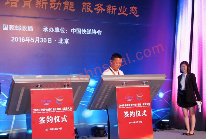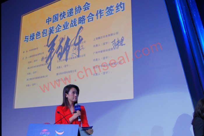 黄山市亿利宏业包装制品有限公司作为中国快递协会理事和快递袋专业生产厂家,应邀参加第四届“京交会”和中国快递协会在此间举办的中国快递行业(国际)发展大会,了解国际服务贸易发展趋势,聆听国内外专家对行业发展的分析,共同探讨快递业与相关产业如何协同发展。在中国快递行业(国际)发展大会上,国家邮政局、农业部等国家部委,中国邮政快递、顺丰、圆通、申通等快递企业,俄罗斯快递协会、FedEx亚太区、德国英特诺等相关国际组织、机构负责人在会上发表主题演讲。中国快递行业(国际)发展大会另一项重要内容是签约仪式。亿利宏业参加了中国快递协会与绿色包装企业战略合作签约。亿利宏业董事长余锦东和另外8家其他快递物料生产企业负责人分别在签约仪式上签字。